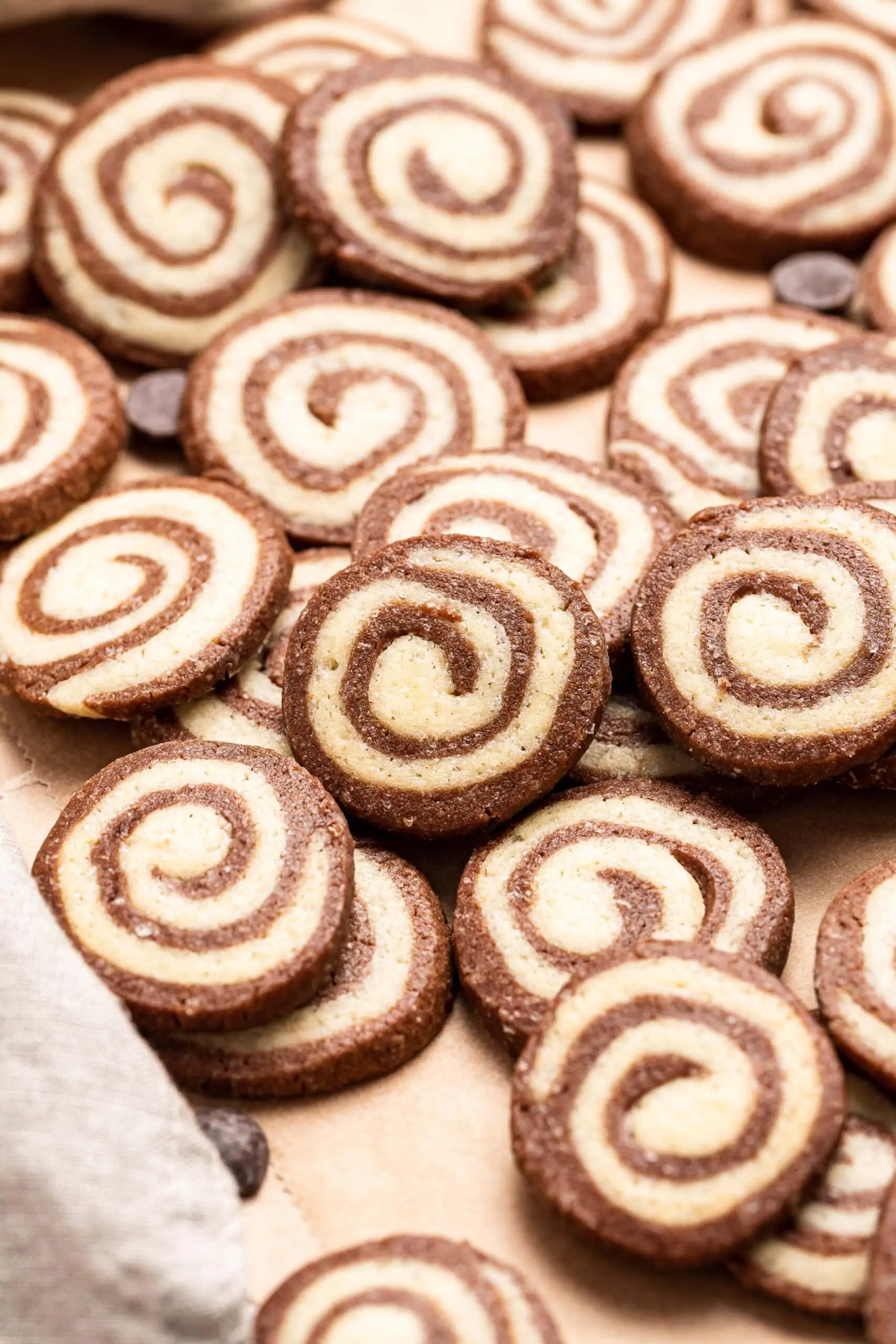 - Store chocolate pinwheel cookies in an airtight container at room temperature for up to 2 weeks.