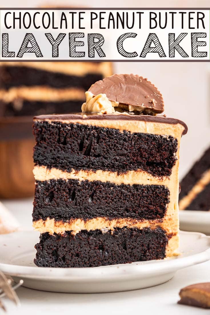 The crumb is soft and velvety, sturdy enough to stack, and full of deep chocolate flavor that stands up to the peanut butter frosting and a rich ganache dripping down over the sides. Think it can’t get any better? If you love a little extra texture, add chopped peanut butter cups between each layer of cake, and more to decorate the top!
