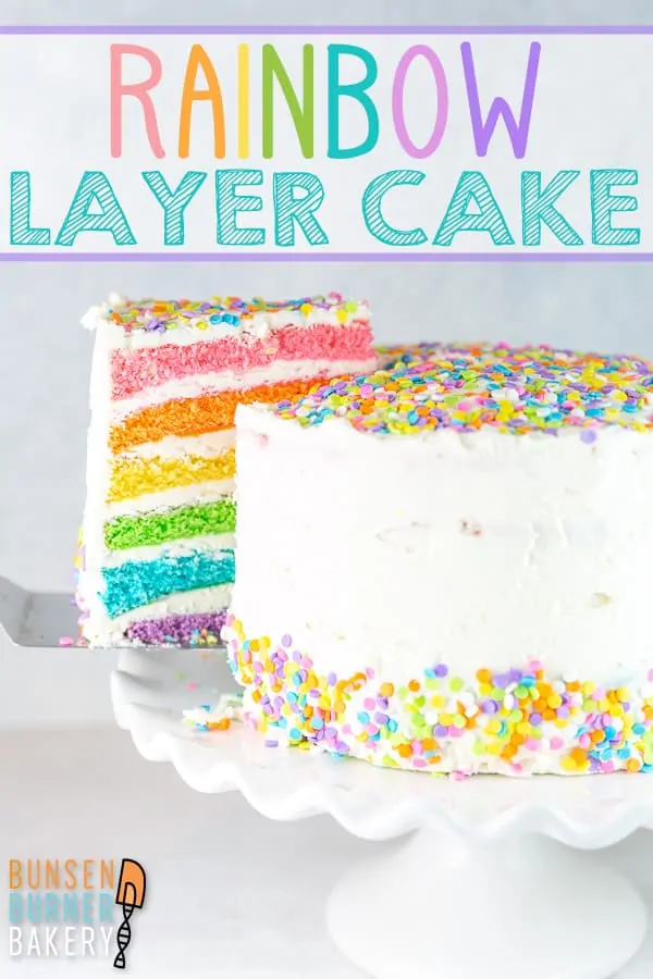 Everything you need to know about how to make a delicious Rainbow Layer Cake from scratch. With six bright and colorful layers, this recipe uses perfectly sized shorter cake layers – big enough for a celebration, but easier to make and transport.